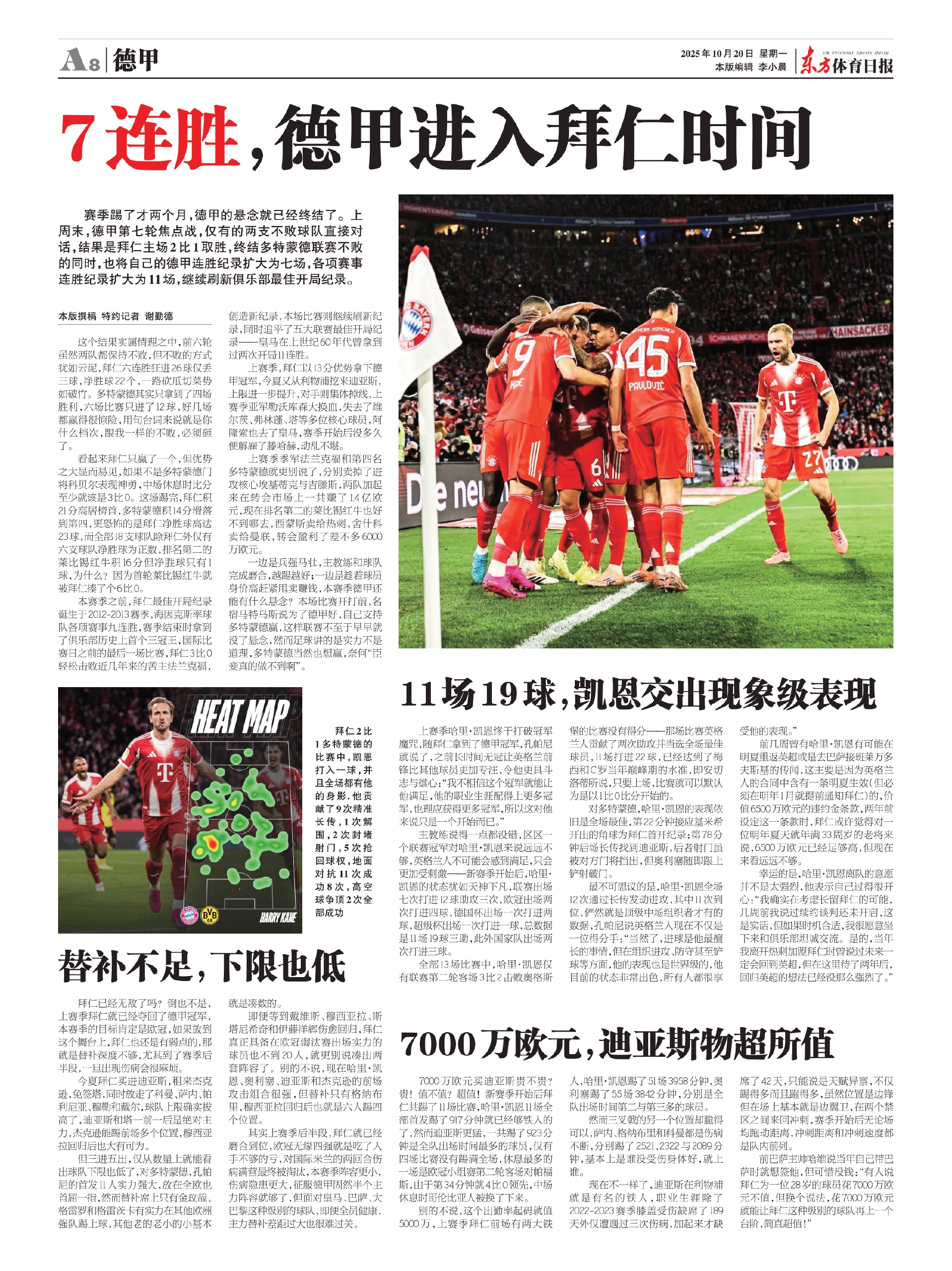 全部13场比赛中,哈里·凯恩仅有联赛第二轮客场3比2击败奥格斯堡的比赛没有得分——那场比赛英格兰人贡献了两次助攻并当选全场最佳球员,11场打进22球,已经达到了梅西和C罗当年巅峰期的水准,即安切洛蒂所说,只要上场,比赛就可以默认为是以1比0比分开始的。