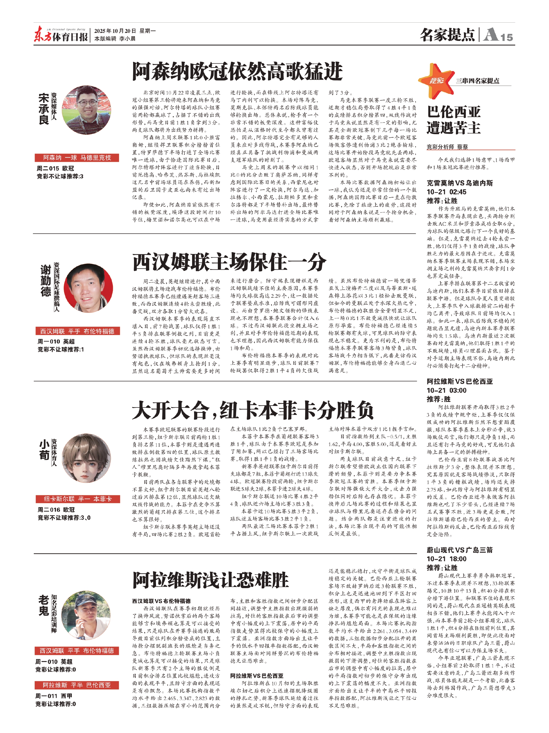 竞彩不让球推荐:3