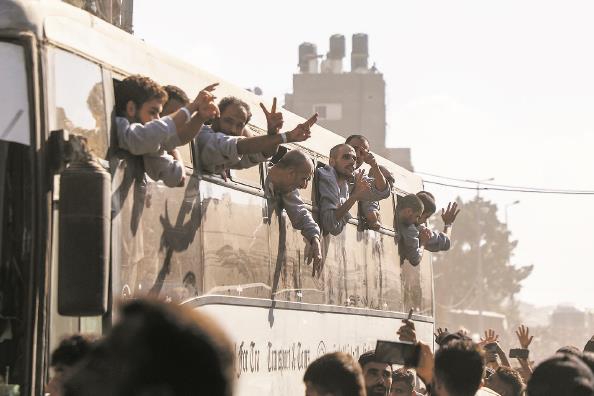 巴勒斯坦获释人员乘坐大巴回到加沙地带南部汗尤尼斯 新华社 发
