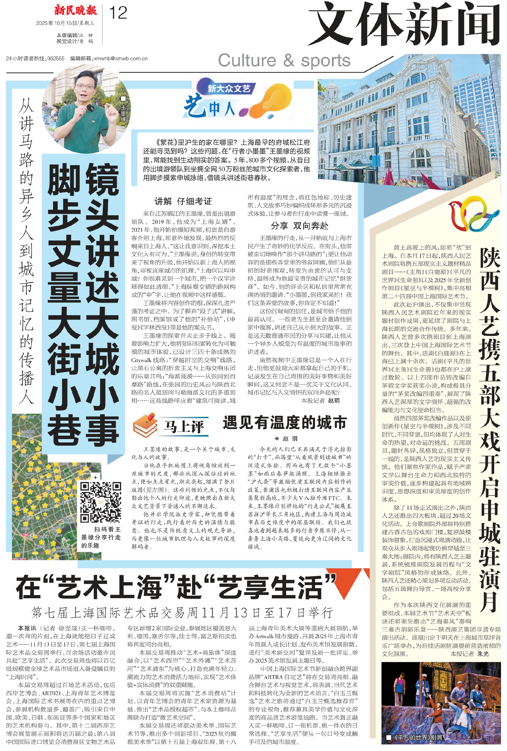 来自江苏镇江的王墨缘,曾是出境游领队。2019年,他成为“上海女婿”。2021年,他开始拍摄短视频,初衷是向游客介绍上海,却意外地发现,最热烈的反响来自上海人。“这让我意识到,深挖本土文化大有可为。”王墨缘说,身份的转变带来了视角的升级,他开始以新上海人的视角,审视这座城市的肌理。“上海何以叫申城?你很难见到一个城市,把一个汉字诠释得如此透彻。”上海纵横交错的路网构成的“申”字,让他在视频中这样感慨。