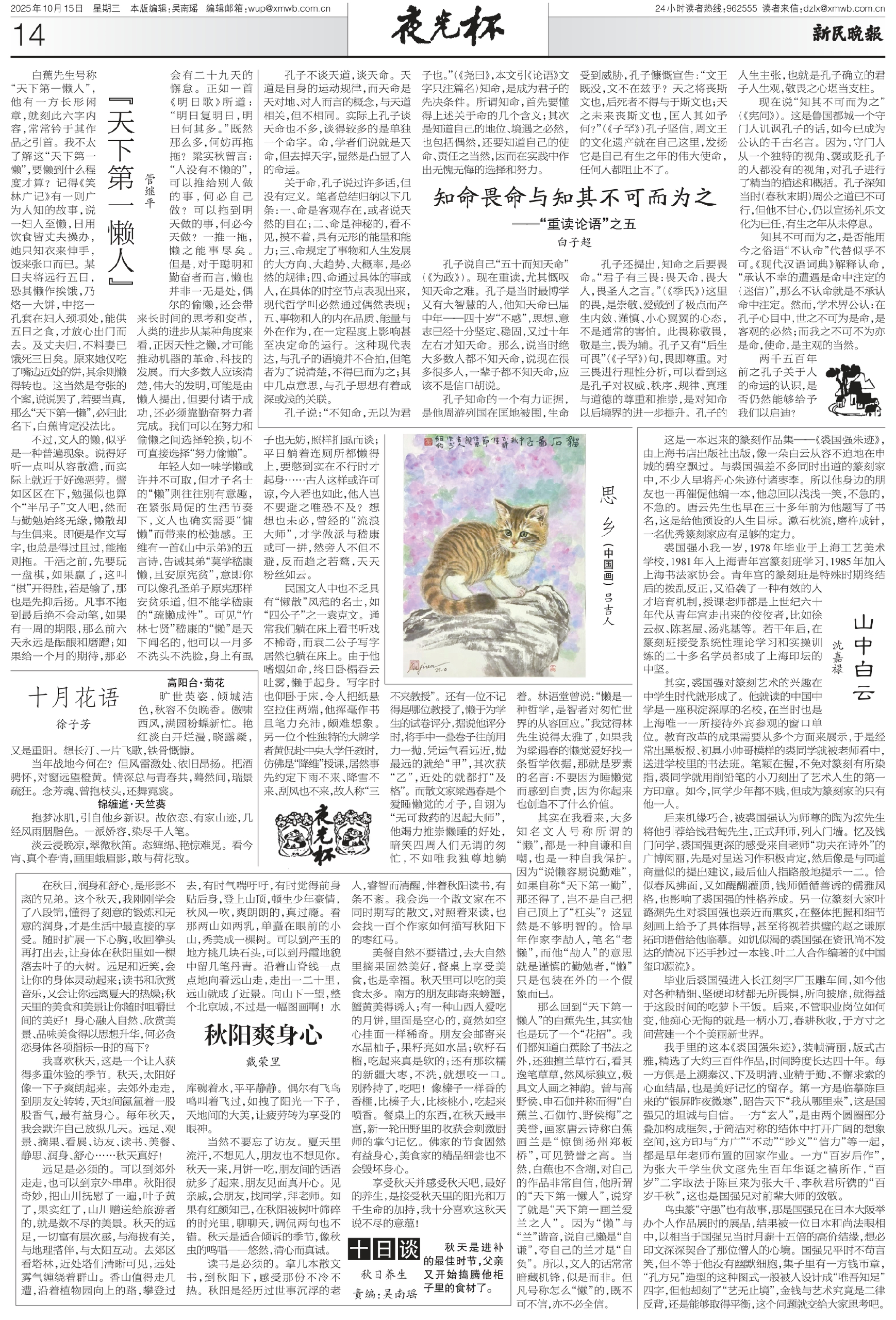 其实在我看来,大多知名文人号称所谓的“懒”,都是一种自谦和自嘲,也是一种自我保护。因为“说懒容易说勤难”,如果自称“天下第一勤”,那还得了,岂不是自己把自己顶上了“杠头”?这显然是不够明智的。恰早年作家李劼人,笔名“老懒”,而他“劼人”的意思就是谨慎的勤勉者,“懒”只是包装在外的一个假象而已。