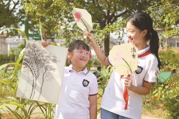 在松江区九亭第五小学,孩子们开心的不是每周三不用写作业,而是这一天的学习会变得特别有趣。“无作业日”政策实施后,首先出招的是学校的美术老师,他们设计了一个“行走的课堂·绘见万物”活动:一年级娃整理“专属美术包”,给彩笔、画纸“找家”,悄悄养成秩序感;二年级娃变身“交通标识侦探”,把“禁止通行”“注意行人”画下来,美术课秒变安全小课堂;三年级孩子钻进“龙舟世界”,用画笔讲龙舟故事,触摸传统文化;四五年级学生则开启“寻绿之旅”,把校园里的花草树木画进纸里,让自然之美在笔尖绽放。紧接着,音乐老师们也创意频出:一年级同学给高音谱号、低音谱号画卡通装,抽象符号秒变“小动物”;二年级同学用玻璃杯和清水做“乐器”,调试水量敲出动听的音乐,成就感瞬间拉满;三年级同学聊马头琴、画草原,感受蒙古族音乐魅力;四年级同学和爸妈们一起玩“节奏接力”,拍手跺脚传节奏,亲子互动超欢乐;五年级学生用吸管做排箫,亲手奏响传统调子,简直太有范儿了。随后,信息教研组和体育教研组的老师们也纷纷为孩子们开发了一系列活动。殷海强校长说,“无作业日”不只是减负担,更要让学习活泼起来,今后学校还会不断升级“无作业日”这一天的学习任务,让每周一次的“快乐实践课”成为孩子们的超酷舞台,真正实现“生活探趣,实践筑梦”。