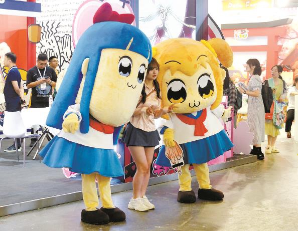 观众与真人扮演的卡通人物互动留影 杨建正 摄影报道