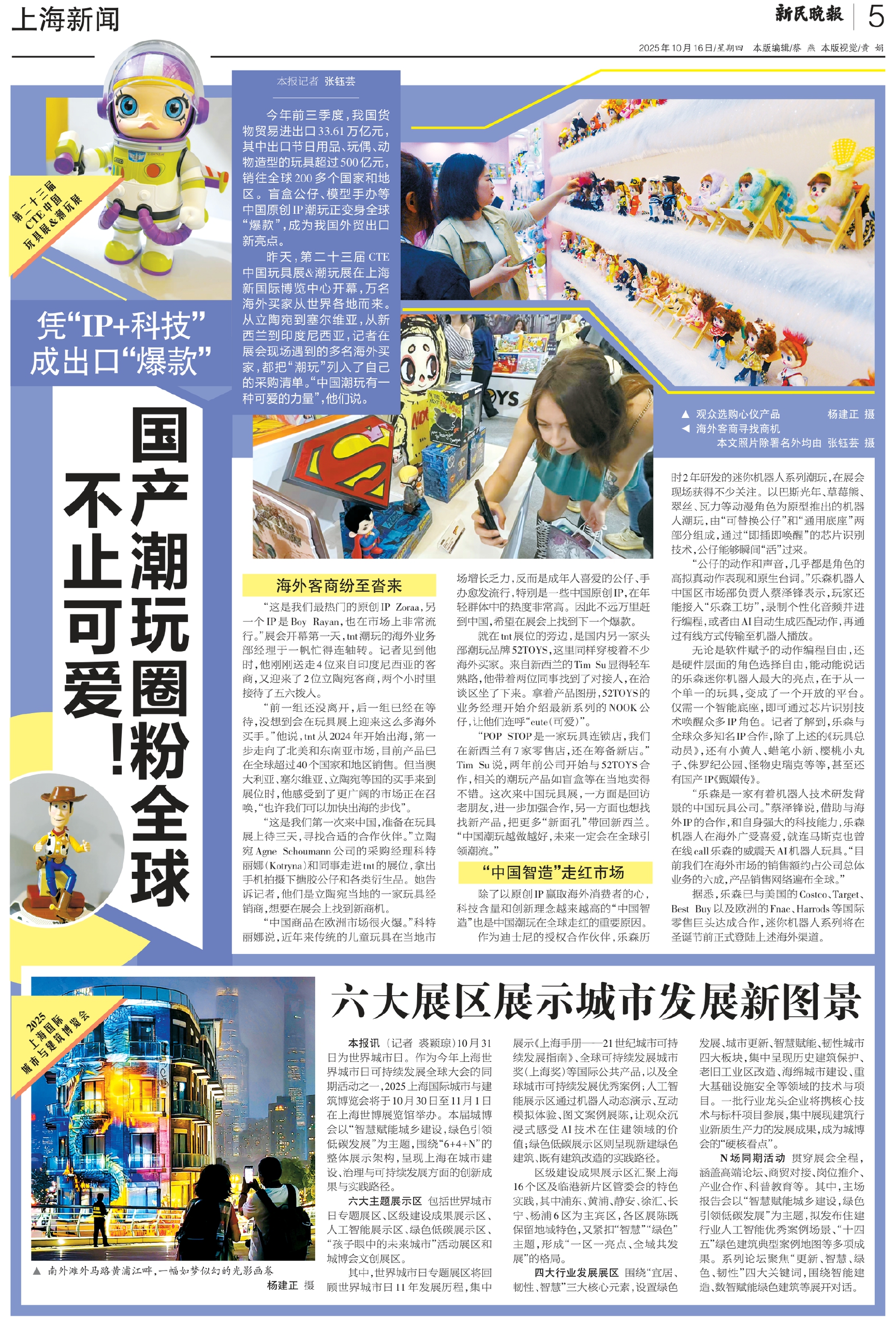 今年前三季度,我国货物贸易进出口33.61万亿元,其中出口节日用品、玩偶、动物造型的玩具超过500亿元,销往全球200多个国家和地区。盲盒公仔、模型手办等中国原创IP潮玩正变身全球“爆款”,成为我国外贸出口新亮点。