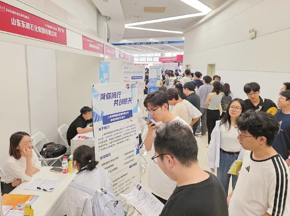 昨天,上海交通大学2026届毕业生秋季招聘会在闵行校区霍英东体育中心举行。 近300家企业发布了11000个用人需求,涉及集成电路、人工智能、化工环保、汽车物流、房地产、建筑、教育、文化传媒、金融、生物医药等308个职位种类。现场,来自交大应届往届以及上海乃至全国多所高校求职者前来应聘,希望找到合适的岗位。 本报记者 张龙 摄影报道