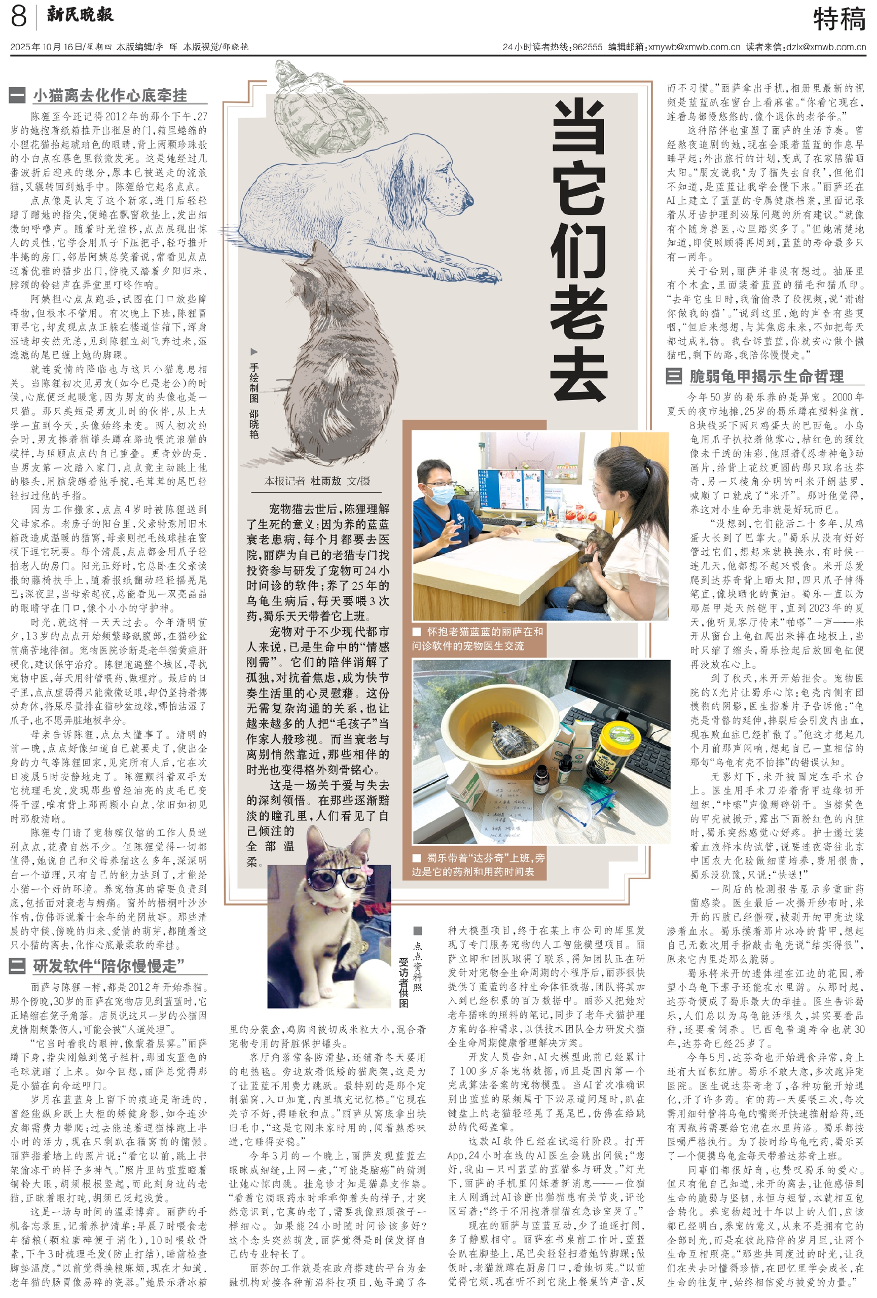 宠物对于不少现代都市人来说,已是生命中的“情感刚需”。它们的陪伴消解了孤独,对抗着焦虑,成为快节奏生活里的心灵慰藉。这份无需复杂沟通的关系,也让越来越多的人把“毛孩子”当作家人般珍视。而当衰老与离别悄然靠近,那些相伴的时光也变得格外刻骨铭心。