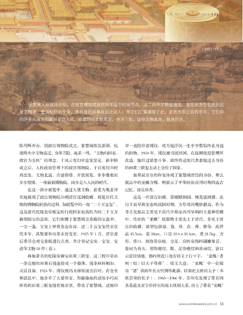 这是中华民族的骄傲所在,也是全人类的珍贵文化遗产,无怪乎有人感叹,在故宫,可以看到整部中国史。如今,故宫博物院建院100周年之际,“百年守护——从紫禁城到故宫博物院”特展正通过三大篇章,还原属于故宫的百年行旅,展现中华文明一脉相承、守望相传的百年答卷。
