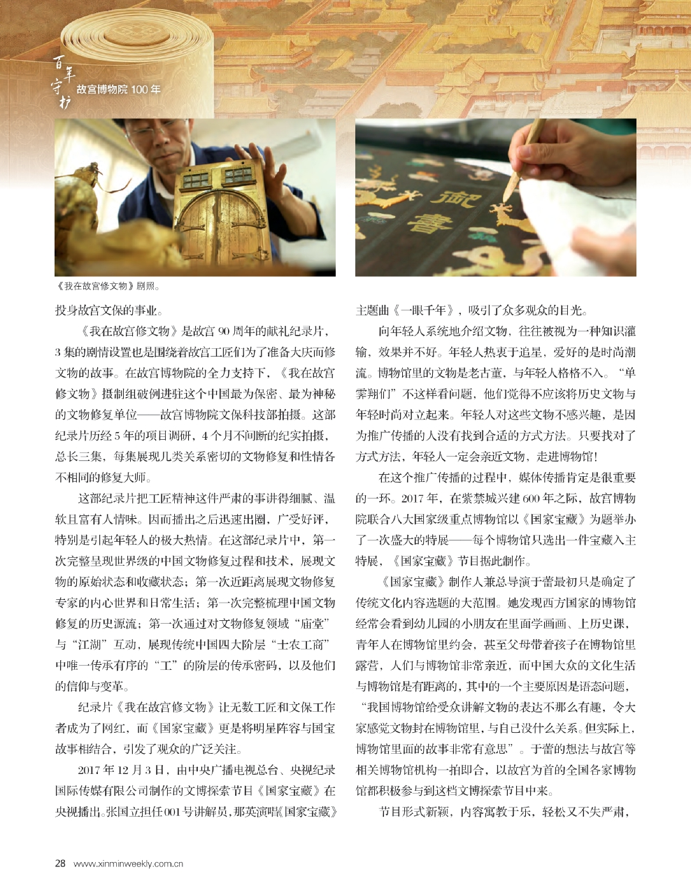 最关键的,在单霁翔看来,博物馆应该是人们学习的一个大课堂,也应该是人们生活中的一片文化绿洲。不要走马观花,要扎根心底。这两档电视节目,既要吸引年轻人,更要在他们的心里种下文保的种子,让他们真正走进文物的世界。