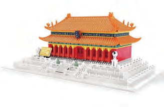这款经故宫文化正版授权的国风积木,以超过7600+的积木颗粒1:100比例高度还原故宫太和殿,是总长度达76厘米的恢弘建筑模型。研发团队多次赴京与故宫古建专家、文化历史专家进行面对面交流,并实地测绘。