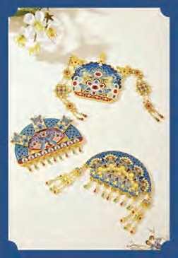 凤冠霞帔系列,将传统文物配饰化作可触碰的立体艺术品。霞帔是古代妇女的一种披肩服饰,宋代起成为命妇的礼服,“非恩赐不得服”,并随品级高低装饰不同纹样。每一枚书签、发簪、冰箱贴,都采用云纹、缠枝莲纹等,寓意美好祥端。