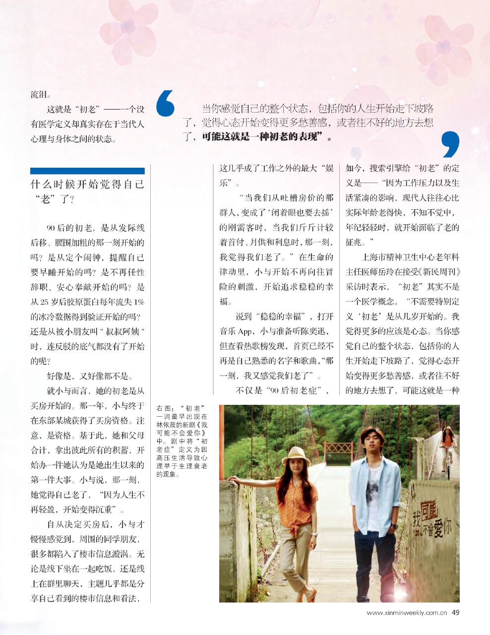 右图:“初老”一词最早出现在林依晨的新剧《我可能不会爱你》中。剧中将“初老症”定义为因高压生活导致心理早于生理衰老的现象。