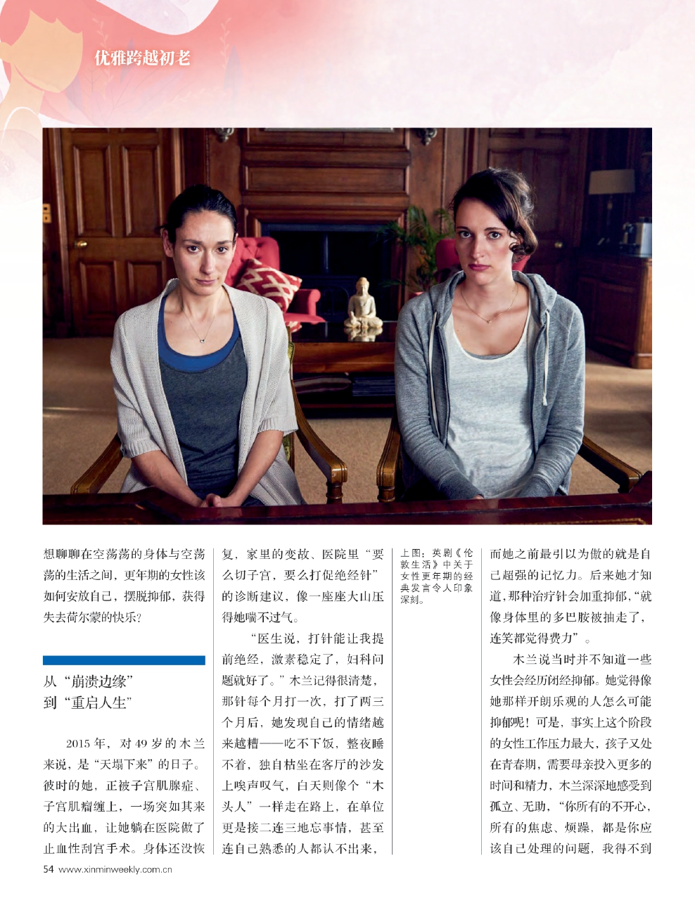 记者对英剧《伦敦生活》里一段经典台词印象深刻。女老板对着人生失意的大龄女主感叹:女性的生理命运仿佛自带痛苦,这是我们的生理命运。经痛、乳房、生孩子,我们一辈子都要自己背负……然后更年期来了。“绝经真是这世界上最他妈美好的事!虽然盆底肌会松弛,还经常发热,即使打扮精致也没人撩,但你自由了,不再是奴隶,不再是一个生育机器,而是一个性别不再重要的、一个单纯的生意场上的人。”