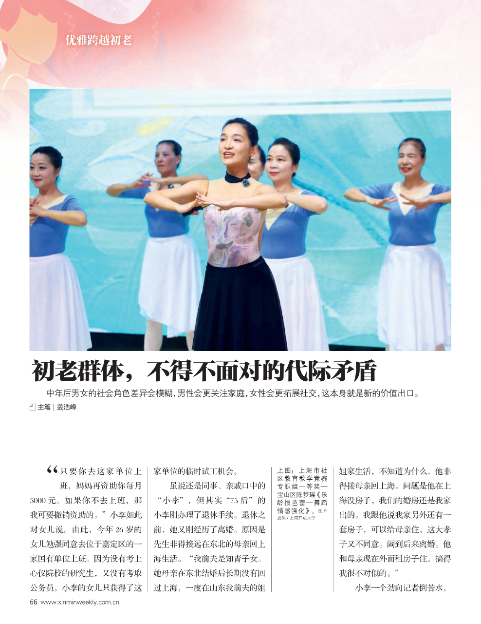 李爱铭的学员中,有一起唱昆曲的,有一起钻研摄影技术的,甚至还有结伴研究业委会侵权问题的。构成了新的生活社交圈子,简直不亦乐乎。自我悦纳,让自己变得更好,且知足常乐,就能走向自洽。”李爱铭说,“一个人的一生,每个年龄段有每个年龄段的发展核心议题。我们要随着阶段性的变化,而将一些事随时归零,让一些事、一些梦想随时开始。说到底,初老不是人生的‘下坡路’,而是带着经验重新出发的阶段。”