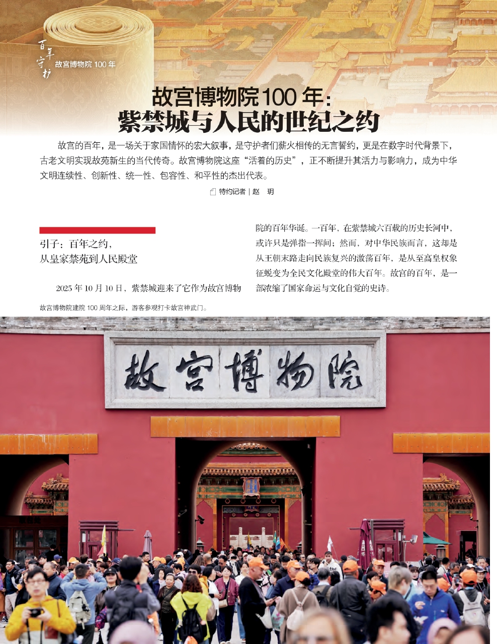 故宫的百年,是一场关于家国情怀的宏大叙事,是守护者们薪火相传的无言誓约,更是在数字时代背景下,古老文明实现故苑新生的当代传奇。故宫博物院这座“活着的历史”,正不断提升其活力与影响力,成为中华文明连续性、创新性、统一性、包容性、和平性的杰出代表。